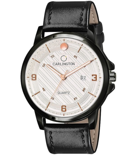 Carlington Black Stainless Steel Watch With Textured Black Dial And Silver Tone Hands quantity