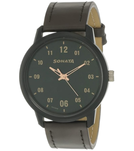 Sonata Watch With a Black Dial And Dark Brown Strap Color Combination