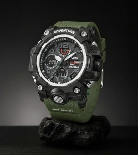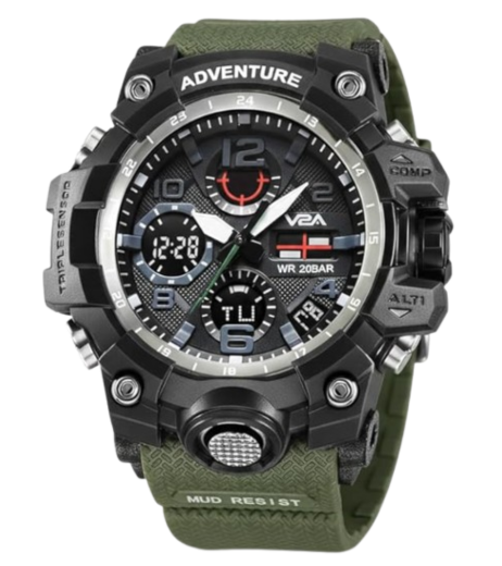 VDA Adventure Watch With a Black Dial And An Olive Green Strap quantity